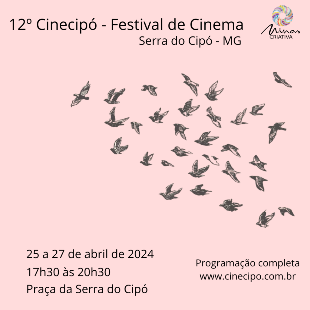 De 25 a 27 de abril acontece, na praça da Serra do Cipó, a 12ª edição do “Cinecipó – Festival de Cinema”. Serão duas sessões diárias de curtas, incluindo filmes infanto-juvenis. As temáticas abordam assuntos sobre povos quilombolas, biodiversidade, territórios ancestrais e contemporâneos, emergência climática e outros temas contemporâneos relevantes.